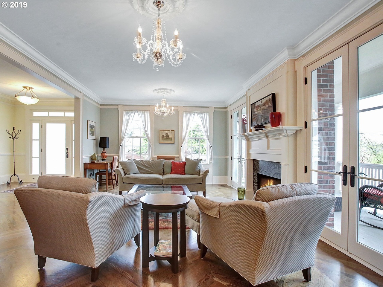 Classic lines: Our timeless layout features two fireplaces, high ceilings, windows everywhere, covered porches with columns, a dining room that seats twenty, three sets of French doors, herringbone oak floors, period moldings and romantic lighting. The graceful Greek lines have been stylish for 4,000 years.